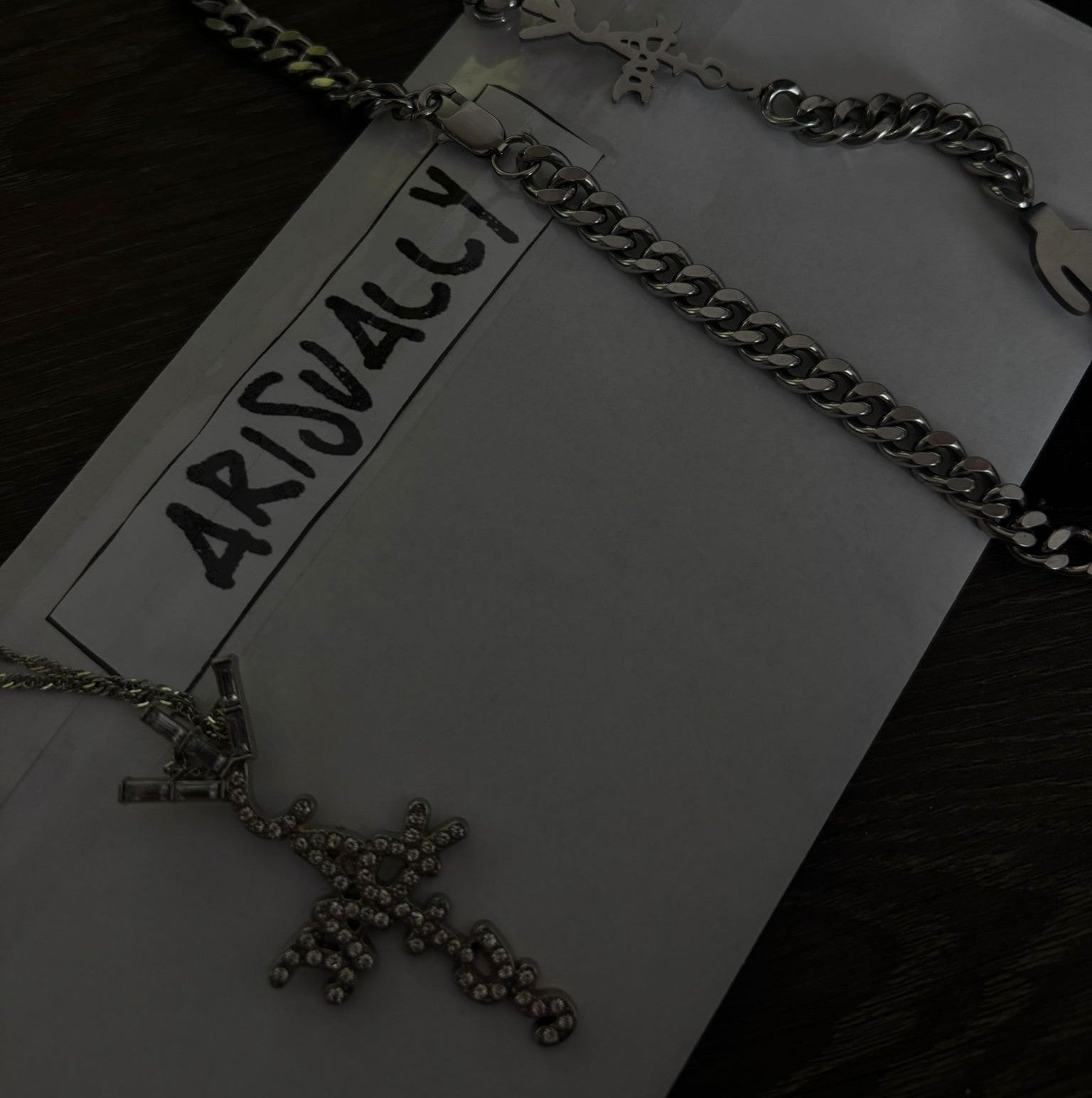 This statement necklace features a bold cross silhouette fused with flowing script lettering, fully iced with precision-set stones for maximum shine. The intricate design blends spiritual symbolism with modern street aesthetics, making it a standout piece for everyday wear or special occasions.